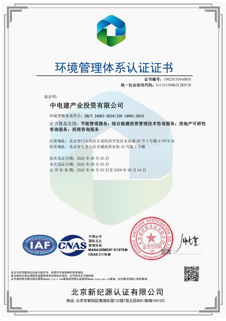 中电建产业投资有限公司(简称“中电建产投”)以“新能源、新产业、新思维”为发展理念,逐步形成了特色鲜明、结构清晰的业务体系。在产业投资方面,聚焦清洁能源和可再生能源的应用,在践行“双碳”国家战略的同时,响应电建集团“水能城数”的发展目标,通过投建营一体化模式,为业主提供零碳服务全周期解决方案;在产城服务方面,则专注于代建业务,通过引入现代化管理理念和数字化手段,提升产品品质与服务体验。此外,公司还以研策招商服务为重要支撑,为客户提供从产业研究、项目策划到招商引资的全周期解决方案。公司高度重视技术创新与研发积累,目前已成功获取2项发明专利和5项软件著作权,持续夯实企业在绿色建筑、智慧能源、数字化管理等领域的核心竞争力。